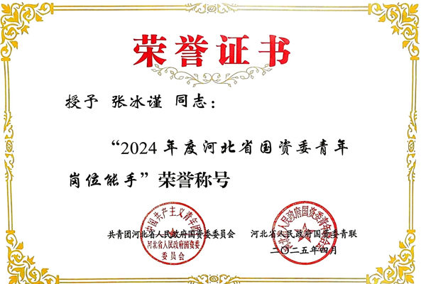 七分公司张冰谨获评河北省国资委“青年岗位能手”荣誉称号