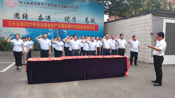 9月18日上午,三分公司组织机关全体职工在分公司院内举行了第十八次“百日安全生产无事故倒计时”活动启动仪式,分公司经理李书伟带领职工进行安全宣誓,随后大家在印有“履职尽责,严细管控”活动主题的条幅上签名。各项目部也相继开展了倒计时活动启动仪式。