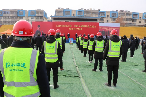 2月17日上午9点,石家庄市2022年一季度县城建设重点项目集中开工仪式在鹿泉区举行,主会场设在三分公司承建的鹿泉区体育场地下停车场项目现场。石家庄市副市长郑巍,市住建局、鹿泉区领导和区直属部门以及施工单位等参加,藁城、栾城、正定等区县分会场通过云视频与现场进行互动。市政府副秘书长郭彦军主持开工仪式。