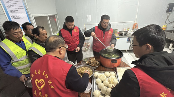 项目务工人员大多是当地村民,离家较近的务工人员常自带饭菜加热食用。然而,天气寒冷或加班时,饭菜容易变凉。考虑到这一点,项目部志愿者团队联合食堂师傅,为工人们准备了热餐器具,并额外提供免费鸡蛋汤,让大家在繁忙的施工之余,感受到家一般的温暖。这一举措不仅让工友们吃得安心、干得舒心,更激发了大家的工作热情,为施工生产注入了强劲动力。