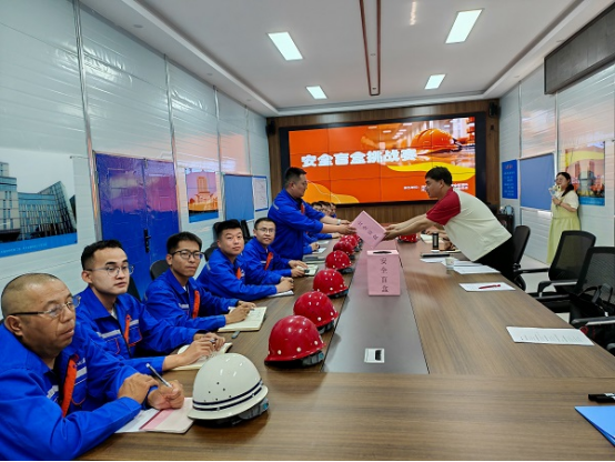 “脚手架的横向水平杆最大间距不得超过多少米?”“不得超过2米。”“深基坑维护失效有哪些早期症状?”……5月15日上午9时,在元氏二院项目部会议室内,一场别开生面的“安全盲盒”挑战赛正在举行。会议桌中央两个“安全盲盒”吸引了全场人员的目光。比赛由分公司安全管理科副科长刘硕主持:“盲盒内装有危大工程相关标准规范和安全知识问答卡片,参赛者随机抽取作答,我将根据回答情况进行讲解,帮助大家深化理解。”